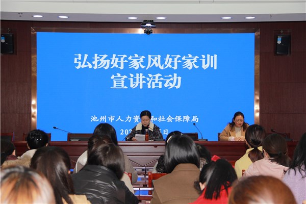局党组成员、副局长姚萍向职工们宣布局弘扬好家风好家训活动正式启动,安排人员向大家讲述了2个荣获2020年“全国文明家庭”的优秀家风故事,从家庭文明建设在全国文明城市创建中的重要作用角度,倡导大家要自觉践行孝亲敬老、邻里互助、清正廉洁等家庭美德,把好家风好家训作为传家宝代代相传,真正以家庭文明带动城市文明,为创建全国文明城市、建设新阶段现代化“三优池州”汇聚强大正能量。