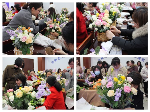 在随后开展的艺术插花活动上,花艺老师为大家详细讲解了鲜花养护知识,从花材分类、花艺布局等方面传授了插花的基本知识和技巧。伴着阵阵花香,大家认真构思、修剪枝叶、交流技术,在一修一剪之间,女同胞们创作出了一盆盆细致精美、别出心裁的插花作品,并进行了优秀作品评选。