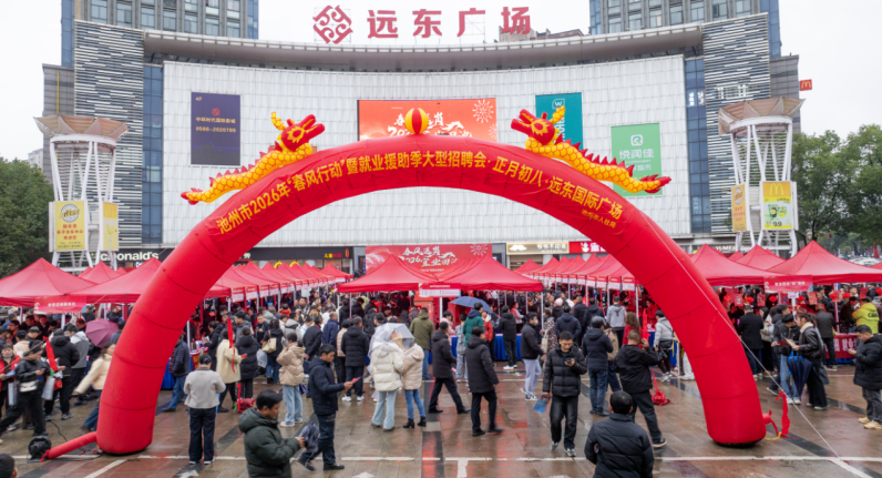 2月24日,农历正月初八,正值马年新春佳节,安徽省池州市主城区的远东广场人头攒动,热闹非凡。由池州市委组织部、池州市人力资源社会保障局共同主办的2026年“春风行动”暨就业援助季大型招聘活动在这里火热启动,正式敲响了新一年“宜业回池”的开场锣鼓。